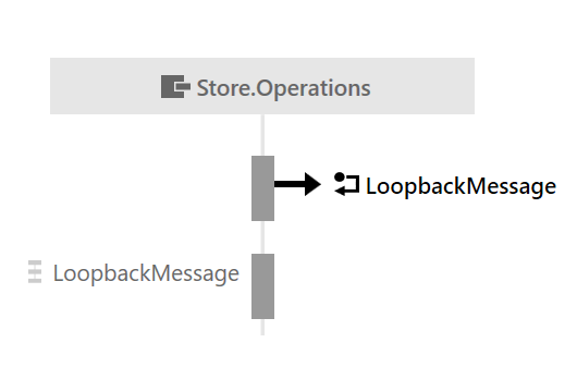 A loopback message is a message that an endpoint sends to itself and is represented by a short arrow with a special icon that does not connect to another endpoint lifeline. As with any other message, hovering over or selecting the message will highlight the processing for that message in the lifeline.